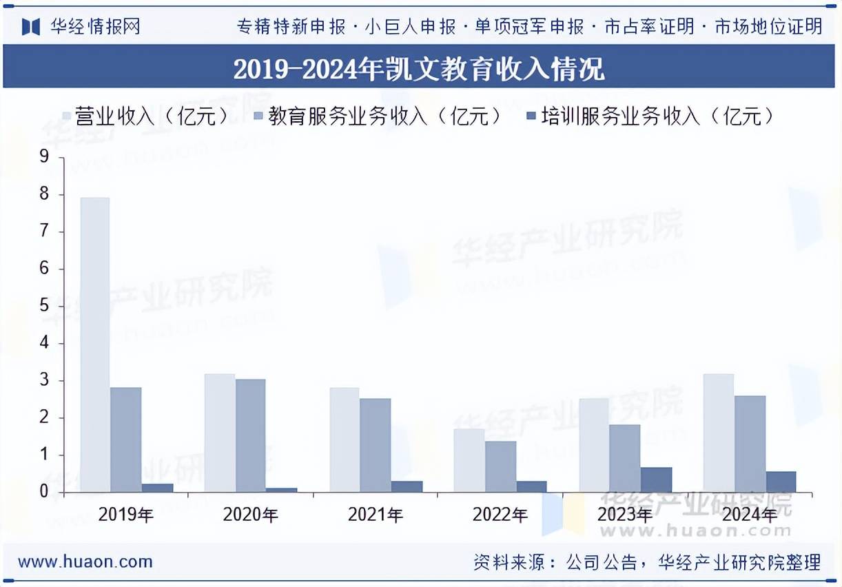 近年来,北京凯文德信教育科技股份有限公司持续深耕教育领域,夯实发展以K12国际教育为核心,素质教育和职业教育协同发展的“一体两翼”战略业务布局。公司全资子公司海科职教作为公司职业教育业务的发展平台,已先后与包括中关村科技创新学院、小米、百度、腾讯、华为、龙芯中科技术股份有限公司、北京凤凰数字科技有限限公司、北京启明星辰信息安全技术有限公司等在内的行业领先企业签约合作,为人才培训和课程开发创造良好基础。据统计,2024年凯文教育营收3.2亿元,同比增长25.92%,其中教育服务业务收入为2.6亿元,同比增长41.86%,培训服务业务收入为0.55亿元,同比下降16.9%。