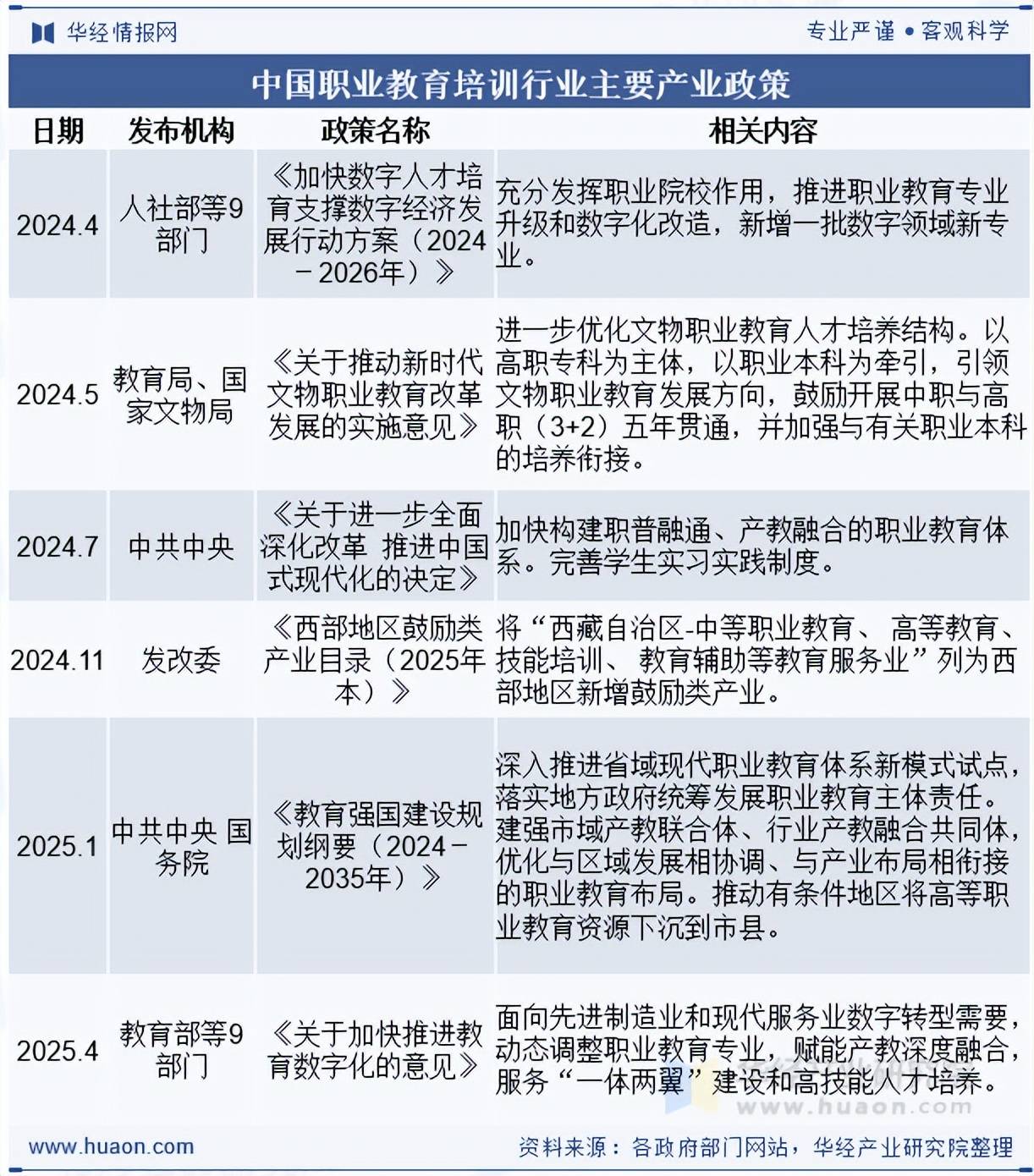 本文节选自华经产业研究院发布的《2025年中国职业教育培训行业发展现状分析:规模不断扩大,数字化趋势明显「图」》,如需获取全文内容,可进入华经情报网搜索查看。