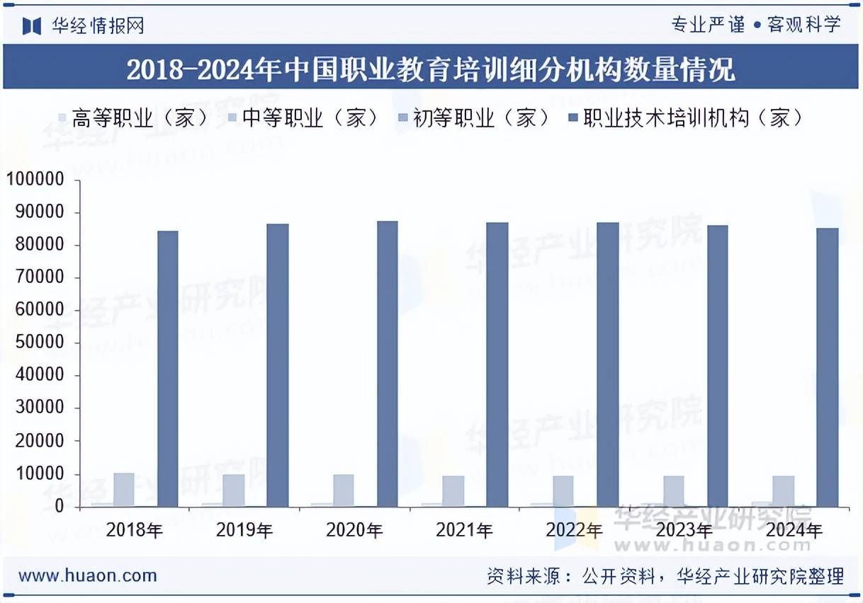 随着社会进步,职业教育作为培育现代公民和增强劳动能力的关键路径,其重要性日益凸显。据统计,2024年我国职业教育培训机构总数约为96595家,相比2023年减少669家。