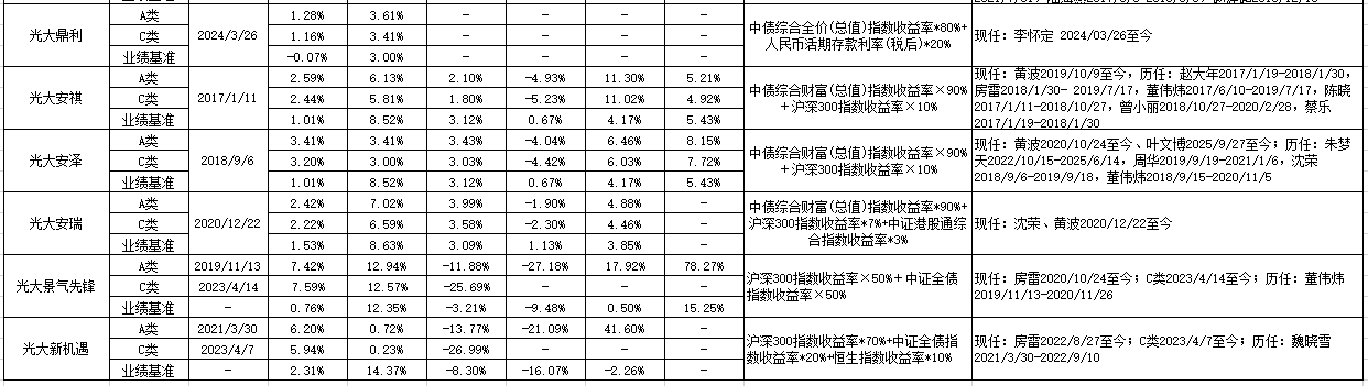 在固收领域,光大保德信基金的表现同样可圈可点。银河数据显示,在全市场普通债券型基金中,光大保德信旗下光大中高等级A、光大添益A、光大晟利A、光大安诚A和光大增利A5只产品近一年收益率均位居同类前10%,具体排名分别为3/271、8/510、10/271、29/510、27/271;光大鼎利A、光大尊裕等近一年收益率也分别在长期纯债债券型基金和定开纯债债券型基金中跻身前20%。