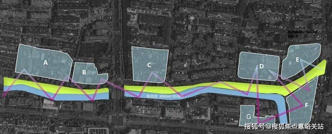 总共7个零散地块,是一个毛地城市更新项目。中间穿插了两条自然河流,一座滨河绿地,多条道路,各自体量都不大,但沿万安路连成一线。
