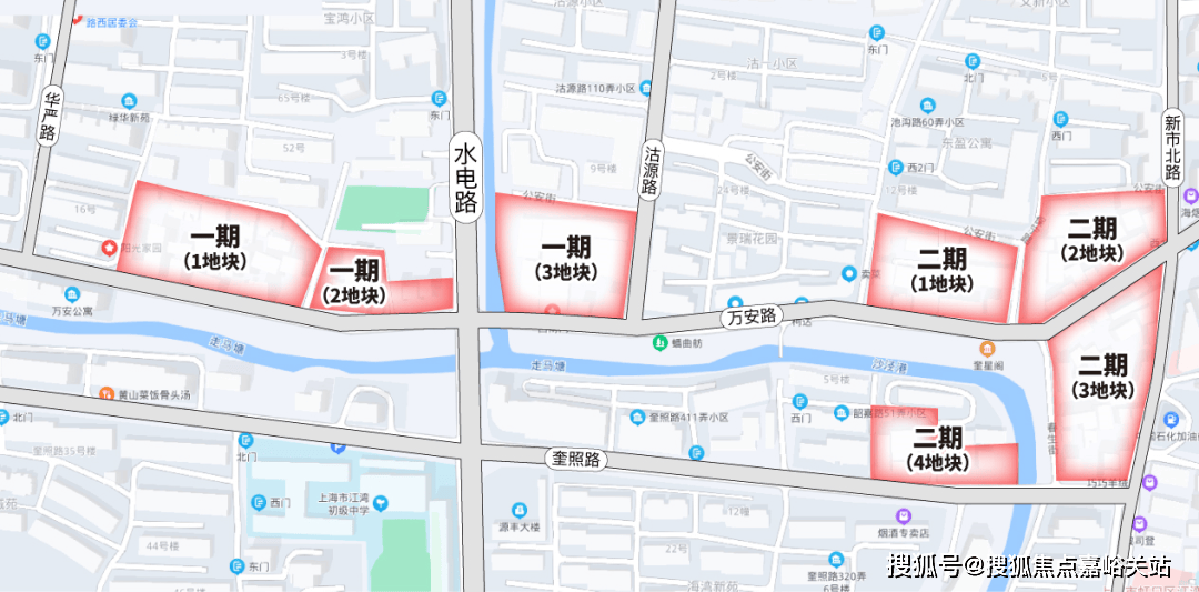 地块位于虹口江湾中心位置,四至范围:西至华严路、南至奎照路、东至新市北路、北抵公安街。