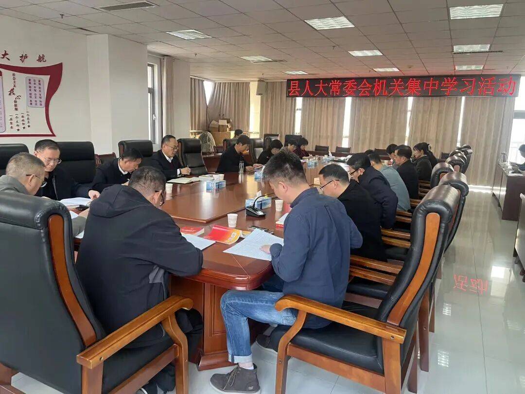 (三)12月18日,县人大常委会党组理论学习中心组集体学习研讨会议召开。县人大常委会党组书记、主任李贵福主持会议并讲话。党组成员、副主任李晓峰、李现棠、杨德芹,党组成员、办公室主任张新出席会议,机关全体工作人员列席会议。