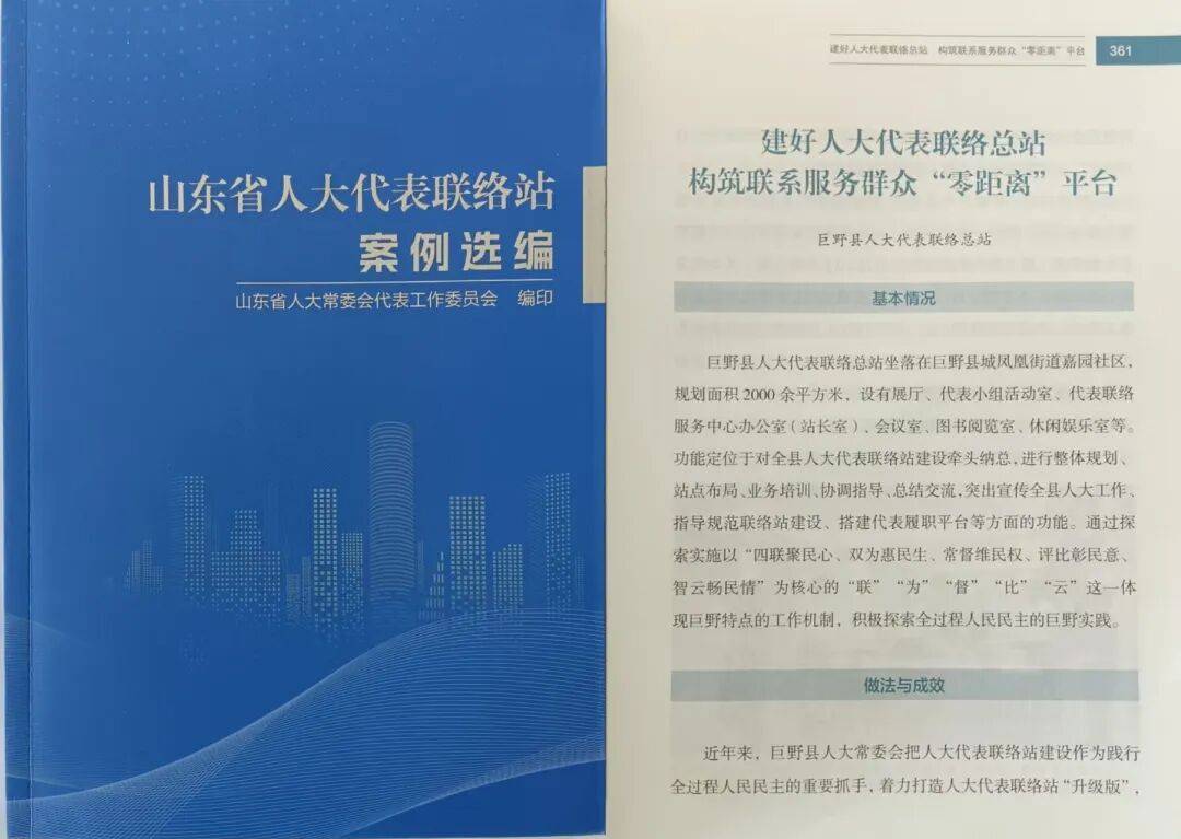 经过前期评比筛选,巨野县人大代表联络总站入选《山东省人大代表联络站案例选编》,每市入选2一3个案例。