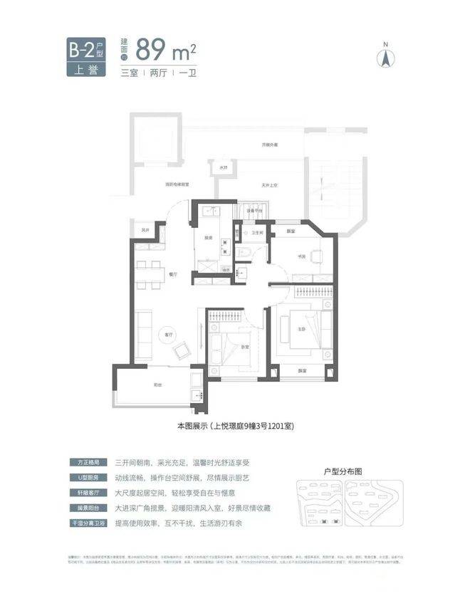 建面约105㎡3房2卫有两种风格(宽厅、竖厅),尤其是宽厅户型,设计格外惊艳。