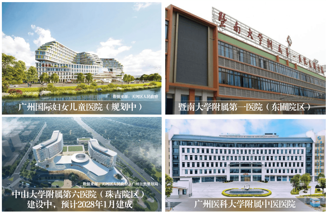 ✔2 公里内社区卫生服务中心,5公里内共计4所三甲医院+4所公立综合性医院(数据来源:天河区人民政府、广州自然规划局;距离来源:百度地图测距)