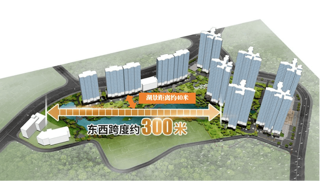 ▸丰厚的湖景资源,环抱映辰湖东西跨度近300米,离湖最近处约40米,专门开辟了私家步道与映辰湖直接相连