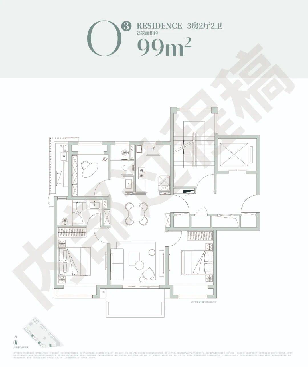 三开间朝南的飞机户型,搭配独立景观阳台,既保证了各卧室的私密性,又实现了优秀的南北通透效果,以舒适门槛即可抢占滨江价值高地,绝对是手慢无的热门之选。