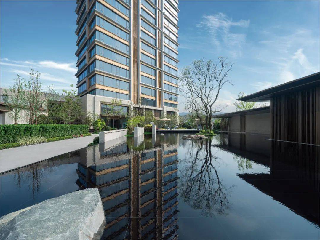 游览御临云峰的园区,仿佛走进一幅流动的画卷。水浪纹艺术小品与叠水台阶相映成趣,营造出贵隐江河汇的宁静与从容。