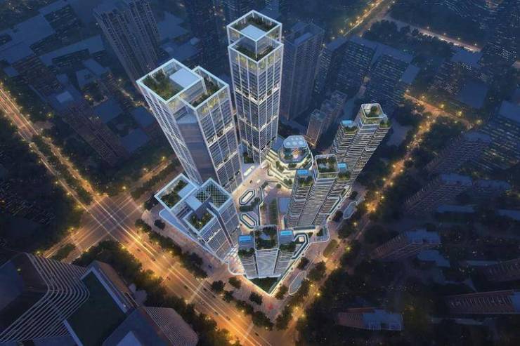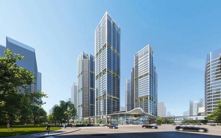 总建面近50万㎡的超级大社区。由7栋最高约200米的建筑组成,包括超甲级写字楼、无界空间和互联网总部大楼。约50万方呈现东静西动的震撼布局,把更好位置留给了居住生活,把繁华汇于西面,无边界的超级大堂,则将业态相互连接,让业主从容往来。
