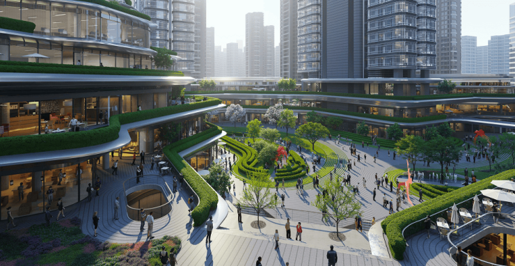 EIC汇聚了超甲级写字楼、顶豪大平层、国际商业街区等多元业态,以先进的无边界理念,模糊工作、生活、居住的界限,打造“8小时工作、8小时生活、8小时娱乐”的复合场所。