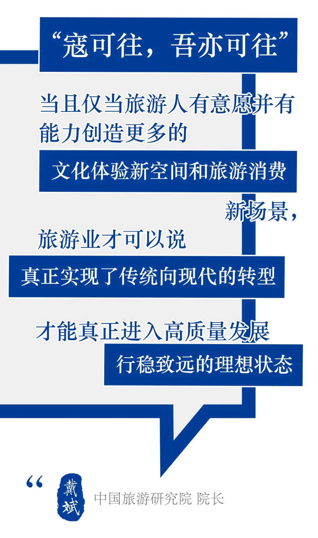 在新的一年里,在“十五五”期间,我们相信科技教育、文化艺术和现代文明的共创,将为旅游业打开一个前所未有的创新发展新空间,实实在在地推动旅游业从传统走向现代。迵异于资源驱动的低附加值、短产业链、窄市场渠道和弱社会影响力的传统旅游业,现代旅游业是中国式现代化进程中的精神享受和文化体验等高水平需求牵引的,也是由科技要素和创新模式等高质量供给满足的。在旅游者定义旅游业的时代,旅游人必须要对旅游需求及其变迁保持敏锐的洞察力。很多时候,我们之所以被时代所抛弃,并不是自己不努力,而是传统的生产方式不再为时代需要了。更多的高科技和高情感的原生性产品,正在创造更多原生的旅游需求。相对于经典旅游目的地、线路和产品,它们或许还有生长的青涩和不自觉的瑕疵,但是直击心灵的真诚还是为旅游者带来了相互链接的情绪价值,进而生成日渐显著的新动能、新要素和新业态。需要指出的是,无论是现代科技,还是人文经济,从来都不是某个群体的专属。“寇可往,吾亦可往”,当且仅当旅游人有意愿并有能力创造更多的文化体验新空间和旅游消费新场景,旅游业才可以说真正实现了传统向现代的转型,才能真正进入高质量发展行稳致远的理想状态。