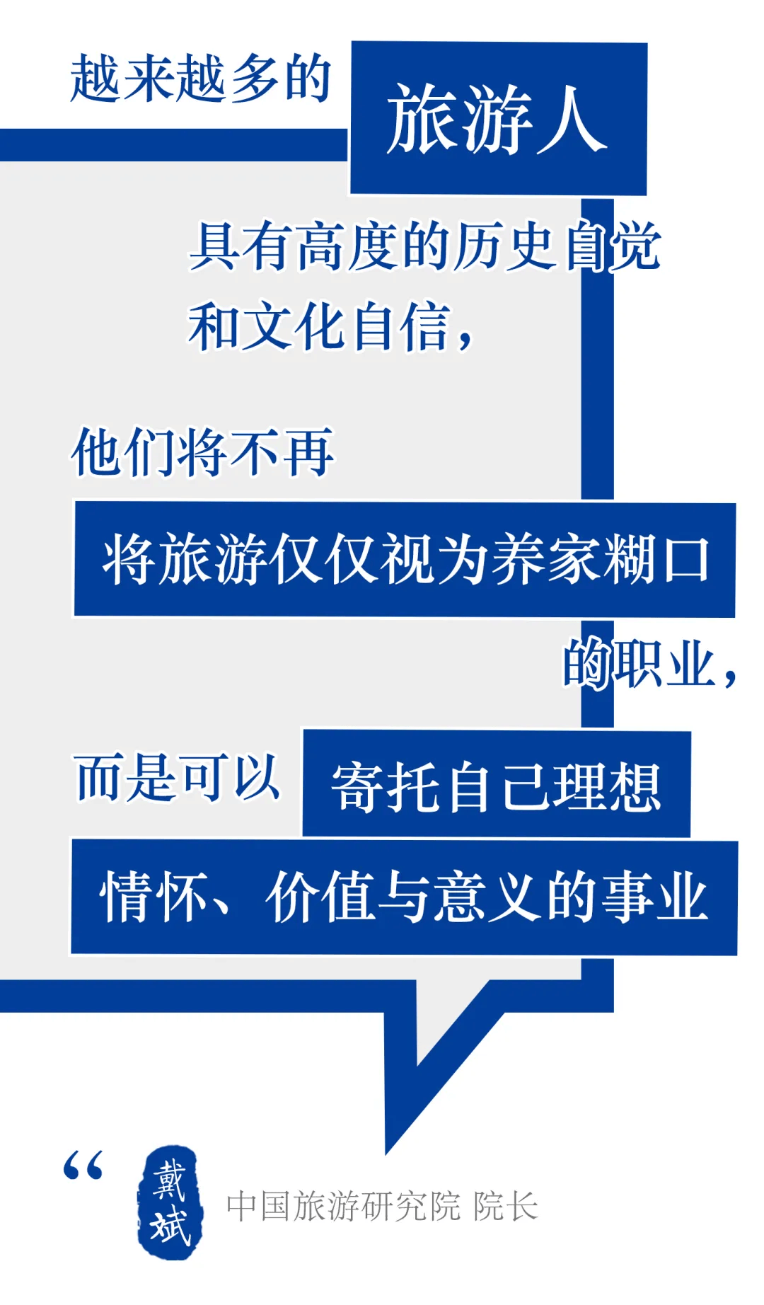 二是做好人文经济学这篇大文章,培育新质生产力新动能,着力构建现代旅游业发展体系。高歌猛进挣快钱的时代已经过去,智慧与耐心主导的长期主义时代正在到来。让政府的归政府,让市场的归市场,更让旅游的归旅游。建设旅游强国、推进文旅融合、推动高质量发展都需要新型生产要素和人力资源,旅游部门、投资机构和市场经营主体要下更大的力气加强市场研究和产品研发。为此,旅游业需要来一次文化创造和思想引领,也需要来一场科技革命和产业创新,以实践的思想推动思想的实践,让旅游人以深厚文化底蕴和较高的专业能力赢得社会的尊重。我们需要优秀的管理者、企业家,也需要高技能应用型人才,而不是所谓的业界领袖和行业精英。大多数业者需要的只是专业而有尊严的职业,品质而温暖的生活。