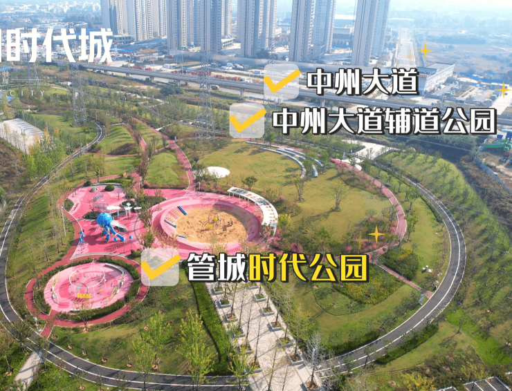 5大主题公园——商业活力公园、青铜文化公园、体育运动公园、儿童休闲乐园,一路之隔管城时代公园已开放