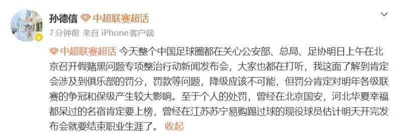 在个人层面的处罚方面,孙德信披露了较为明确的消息:一位曾效力于北京国安和河北华夏幸福的知名前辈肯定会被列入处罚名单;此外,有一位曾在江苏苏宁打球的现役球员可能会因此结束其职业生涯。关于这位已转为知名足球活动参与者的国安、华夏幸福名宿,其身份并非秘密,公众此前曾关注他在亦庄开发区开展的相关活动,甚至李平康称此次发布会风暴正是因他直接参与而引发。